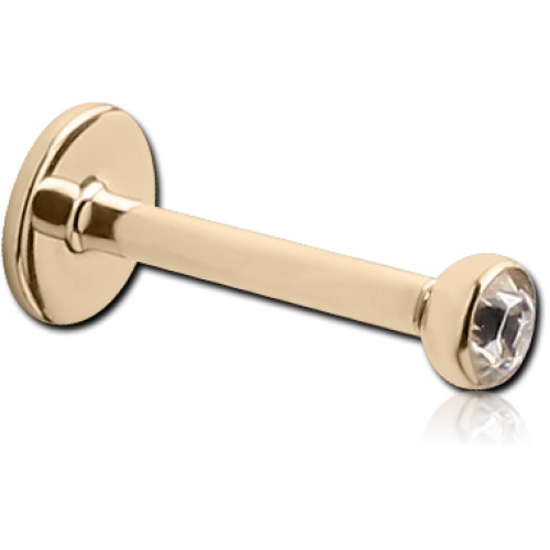 Титановая сережка гвоздик лабрет для пирсинга в губу золотого цвета с камнем 2мм