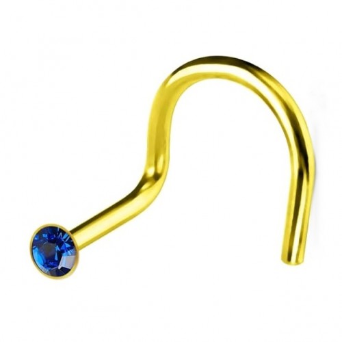 Сережка для пірсингу носа (нострілла) золотиста з синім каменем – стильна та зручна прикраса для проколу носа. Виготовлена з гіпоалергенної хірургічної сталі 316L, що не темніє, не окислюється та абсолютно безпечна для шкіри.