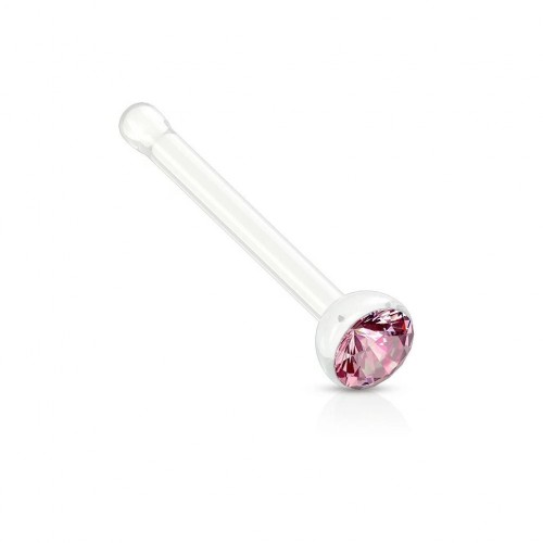 Сережка в ніс акриловий прозорий гвоздик з рожевим каменем